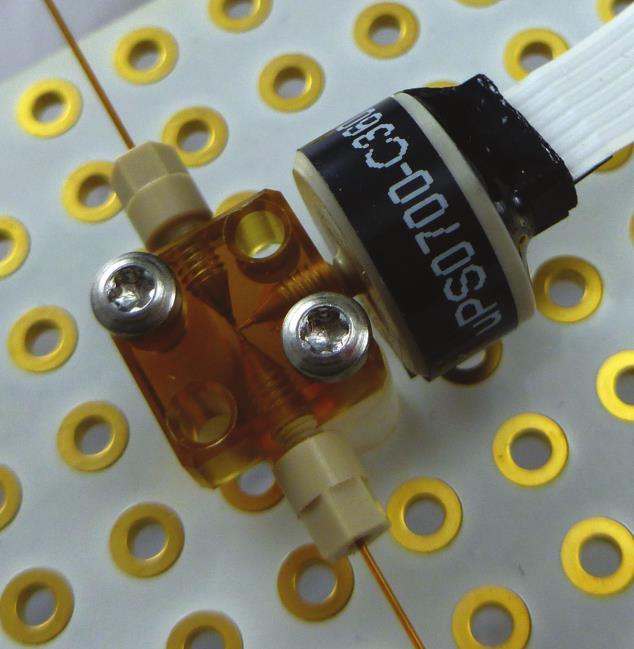 簡(jiǎn)介 uPS系列壓力傳感器來(lái)自美國(guó)LabSmith公司,是uProcess?系列產(chǎn)品的一員,具有低死體積、高精度以及可實(shí)現(xiàn)在線點(diǎn)壓力實(shí)時(shí)測(cè)量的特點(diǎn),是微流控實(shí)驗(yàn)中壓力監(jiān)測(cè)的得力助手。uPS壓力傳感器適配LabSmith CapTite?接頭,通過(guò)LabSmith的uProcess軟件來(lái)對(duì)其進(jìn)行控制,uProcess?軟件可直接操作或編程控制。同時(shí),uPS壓力傳感器也是微流體系統(tǒng)故障診斷的重要工具,如檢測(cè)氣泡、堵塞和泄漏。 uPS傳感器目前提供三個(gè)壓力范圍:0 - 250kpa abs.,0 - 800kpa abs.以及0 - 1800kpa abs.。精度是測(cè)量范圍的1%,可測(cè)試氣體介質(zhì)及液體介質(zhì)。