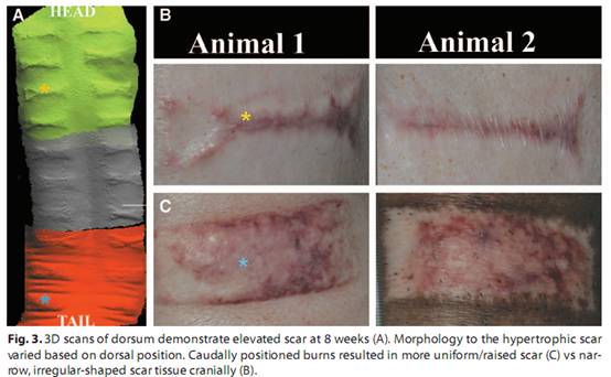 Cited from: Establishing a Reproducible Hypertrophic Scar following Thermal Injury: A Porcine Model. Scott J. Rapp, MD, Aaron Rumberg, BS, Marty Visscher, PhD, David A. Billmire, MD, Ann S. Schwentker, MD, and Brian S. Pan, MD. Plast Reconstr Surg Glob Open. 2015 Feb; 3(2): e309.