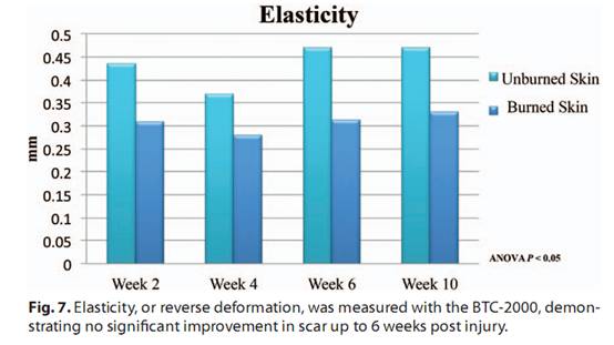 圖8B 燙傷后的瘢痕組織不同的恢復(fù)時(shí)間彈性測(cè)試的結(jié)果