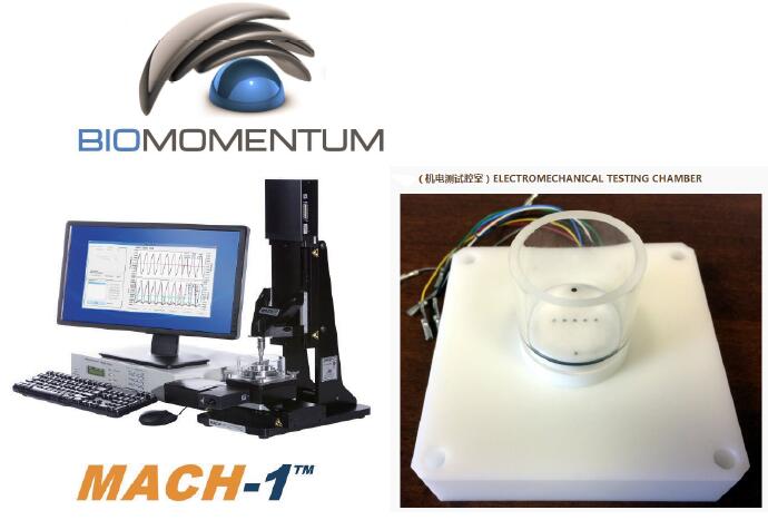 通過在安裝在MachOne上機電測試腔室中加入一組電極來評估軟骨的機電性能,于各種測試方案,包括應(yīng)力松弛、正弦位移和不同配置下的蠕變(受限和非受限壓縮、張力、壓痕和彎曲)可測定軟骨和半月板兩種結(jié)締組織的機電特性。由于組織剛度和壓縮產(chǎn)生的電場(或流電位)對組織的生化成分敏感,測試儀與一組電極耦合,可以j確測量這些電信號。研究正常和退化結(jié)締組織的生化成分和機電特性。