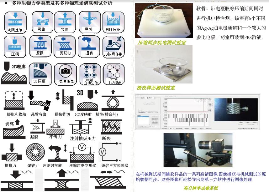 該微觀力學(xué)測試分析與培養(yǎng)系統(tǒng)初該系統(tǒng)為軟骨力學(xué)性能檢測所研發(fā),此后集成了多種配置以滿足更多生物組織和軟質(zhì)材料力學(xué)性能的測量和評估。該儀器卓越性能特點(diǎn)--模塊化設(shè)計(jì),簡易操作平臺(tái),面向用戶設(shè)計(jì),廣泛應(yīng)用于生物材料檢測,高分子材料檢測以及數(shù)字教學(xué)等領(lǐng)域,產(chǎn)品得到了業(yè)界廣泛的認(rèn)可和推廣。該系統(tǒng)