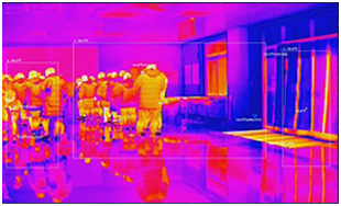 紅外熱像儀測量一個人散發(fā)到他/她的環(huán)境中的熱量,并顯示帶有熱圖的圖像。 該熱像儀比額頭溫度掃描儀快得多。