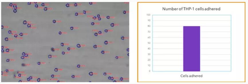 使用 Image Pro Premier 分析 Vena8 Fluoro+ 生物芯片微毛細(xì)血管上的 VCAM 涂層 THP-1 細(xì)胞粘附