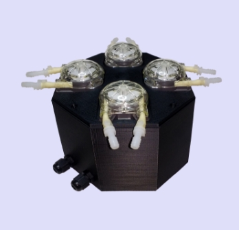 四通道泵模擬心臟的脈動(dòng)動(dòng)作,為中空纖維管及其上的細(xì)胞適用流動(dòng)作用(或剪切應(yīng)力作用)。四元泵包含四個(gè)小型、易于配置的脈動(dòng)泵,能夠持續(xù)流過(guò)DIV-BBB模型。每個(gè)泵都是單du控制的,允許進(jìn)行多達(dá)四個(gè)du立的實(shí)驗(yàn)。