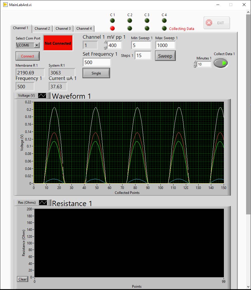 系統(tǒng)用尸通過(guò)系統(tǒng)自簾的DIV-BBB 軟件包進(jìn)行操作, 為TEER和蠕動(dòng)泵的測(cè)試參數(shù)的動(dòng)態(tài)修改提供了一個(gè)直現(xiàn)的界面。TEER用戶界面顯示了原胎數(shù)據(jù)輸出、頻率、時(shí)間等參額選擇。蠕動(dòng)泵的用戶界面通過(guò)允許每個(gè)du立的泵頭選擇流速和不同的正litE)皮形,簡(jiǎn)化了設(shè)置四個(gè)j刷刷霍j主通道的任務(wù)。