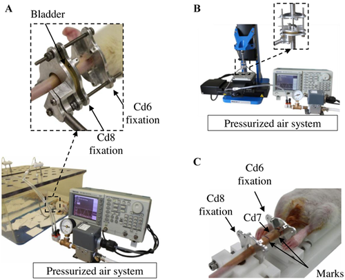 3 手術(shù)和實(shí)驗(yàn)程序:在手術(shù)期間麻醉大鼠,皮下注射鎮(zhèn)痛藥以減少疼痛和感染。用酒精和10%聚維酮碘外用溶液(Proviodine)對(duì)尾巴進(jìn)行消毒后,使用熒光鏡定位手術(shù)。 4每日調(diào)整和鈣黃綠素注射 手術(shù)后立即開始裝載。 在異氟烷下,每天在同一時(shí)間調(diào)節(jié)加載裝置10分鐘,以補(bǔ)償縱向生長(zhǎng)。 根據(jù)校準(zhǔn)曲線改變電壓值。 給大鼠隨意給予標(biāo)準(zhǔn)動(dòng)物食物并保持人工12小時(shí)光照周期。 在安樂死前5天和2天腹膜內(nèi)注射熒光標(biāo)記物鈣黃綠素(15mg / kg)用于生長(zhǎng)測(cè)量。 5 組織收集和處理 在CO 2窒息后,取出三個(gè)尾椎并在福爾馬林溶液中固定48小時(shí)。它們?cè)诖既芤褐忻撍⒃诙妆街羞M(jìn)行分離。在過濾后,將它們包埋在甲基丙烯酸甲酯(MMA)中。完成聚合后以6mm切片。在顯微鏡下觀察切片并測(cè)量。 6 生長(zhǎng)速率和組織形態(tài)學(xué)參數(shù) 生長(zhǎng)速率計(jì)算為兩個(gè)鈣黃綠素標(biāo)記之間的距離除以注射之間的時(shí)間間隔(3天)。組織形態(tài)度量參數(shù)包括總生長(zhǎng)板高度,三個(gè)區(qū)域的高度,肥大細(xì)胞高度和每列的增殖細(xì)胞數(shù)。 7 統(tǒng)計(jì)分析:?jiǎn)我蛩胤讲罘治觯?span>ANOVA),確定了每個(gè)動(dòng)態(tài)實(shí)驗(yàn)組中每個(gè)參數(shù)的平均值之間的差異。