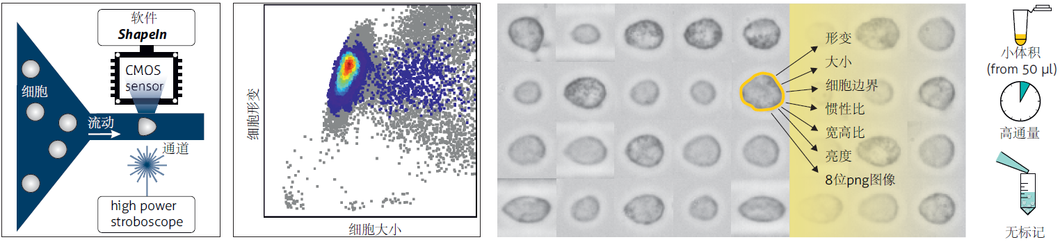 方法:實時形變細胞儀 ZELLMECHANIK DRESDEN 開發(fā)了一種利用力和光來描述細胞的新技術(shù),可以流式細胞儀的速度檢測單細胞形態(tài)和流變學(xué)性質(zhì)。細胞被泵入一個微流體芯片中,同時對細胞進行實時拍照、分析和存儲數(shù)據(jù)。此外,還可以對細胞施加非破壞性的力,以研究細胞對應(yīng)力做出的特異性應(yīng)答,并將其作為細胞的無標記、內(nèi)源性生物標志物。可實時測量、分析、保存所有單細胞參數(shù)。