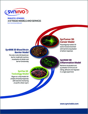 Researchers at Temple University used the?SynVivo? SynBBB TM cell-based? in vitro?assay platform to model the attributes and functions of the neonatal stage blood-brain barrier (BBB) [ 1]. The SynBBB model closely mimics the? in vivo?microenvironment including three-dimensional morphology, cellular interactions and flow characteristics on a microfluidic chip.?This work marks the first dynamic? in vitro?neonatal BBB model that offers real time visualization and analysis and is suitable for studies of BBB function as well as screening of novel therapeutics.