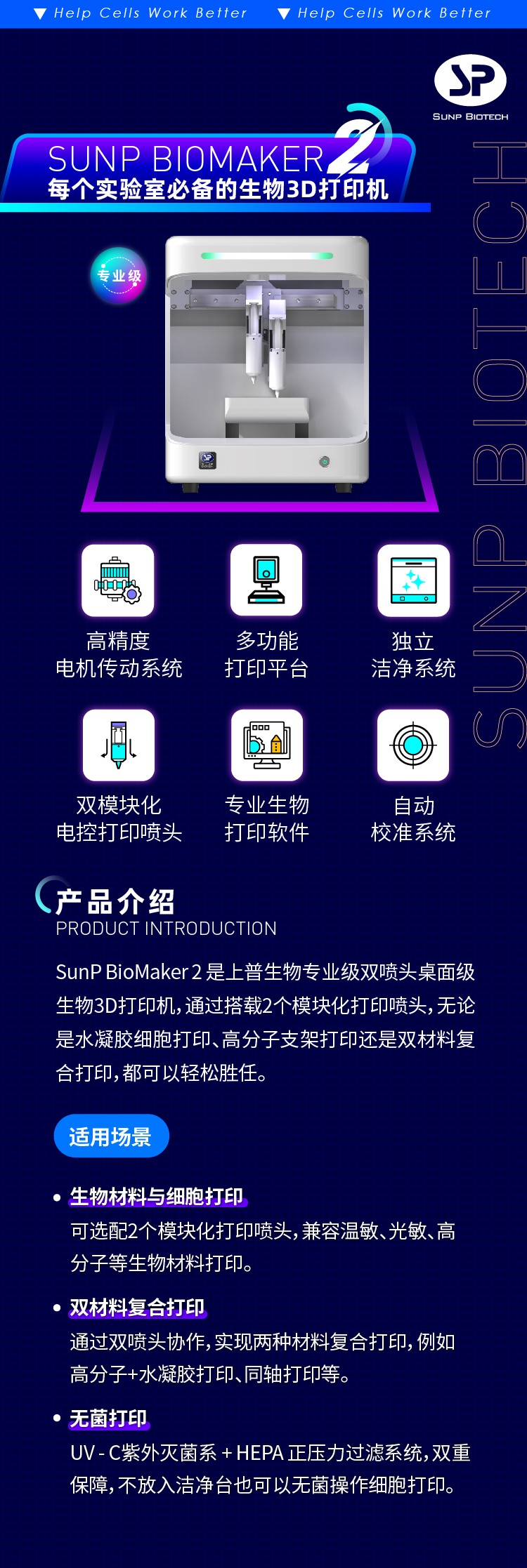 上普生物由清華大學(xué)特聘教授、生物3D打印領(lǐng)域創(chuàng)始人之一的孫偉教授創(chuàng)辦的國家及中關(guān)村高新技術(shù)企業(yè)。公司基于20多年的研發(fā)經(jīng)驗(yàn)以及國際領(lǐng)先的專利技術(shù),致力于提供具有醫(yī)工交互平臺的生物3D打印全流程解決方案及全球領(lǐng)先的生物打印制品??捎糜趥€(gè)性化組織工程、癌癥治療、醫(yī)療器械、藥物研發(fā)領(lǐng)域。